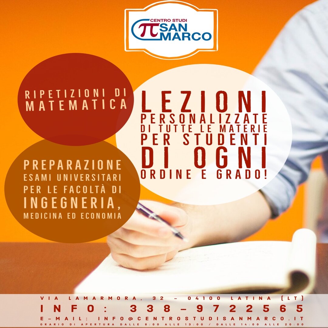 Obiettivo immediato del Centro Studi San Marco è quello di fornire allo studente l’assistenza allo studio necessaria a realizzare in pieno il proprio potenziale nell’apprendimento delle discipline tecnico-scientifiche, informatiche, linguistiche.